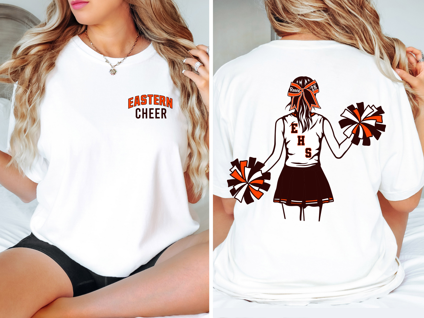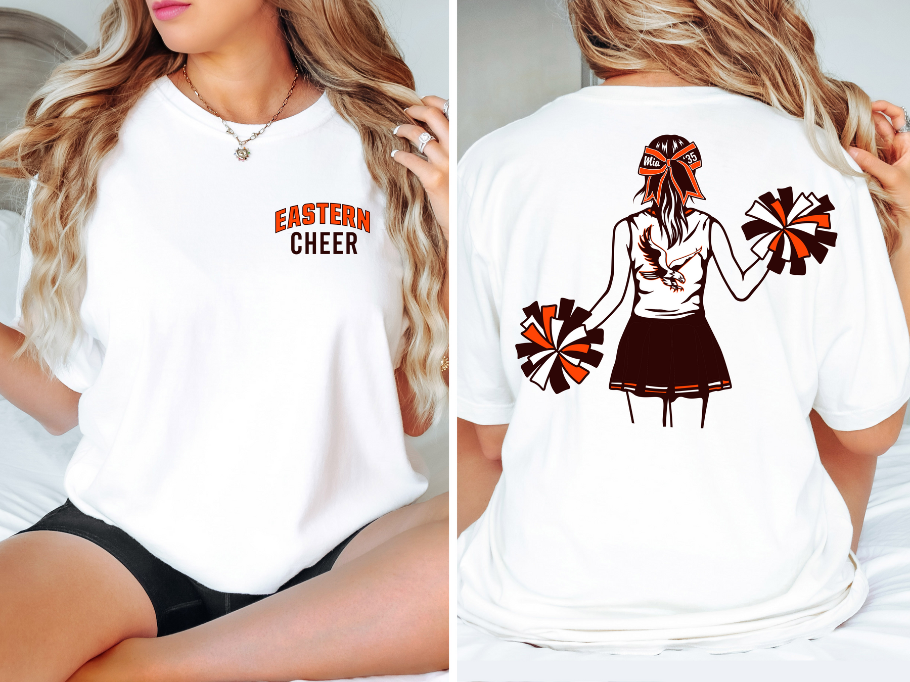 EASTERN CHEERLEADING (JR HIGH AND PEEWEE HAVE A SOARING EAGLE ON BACK)